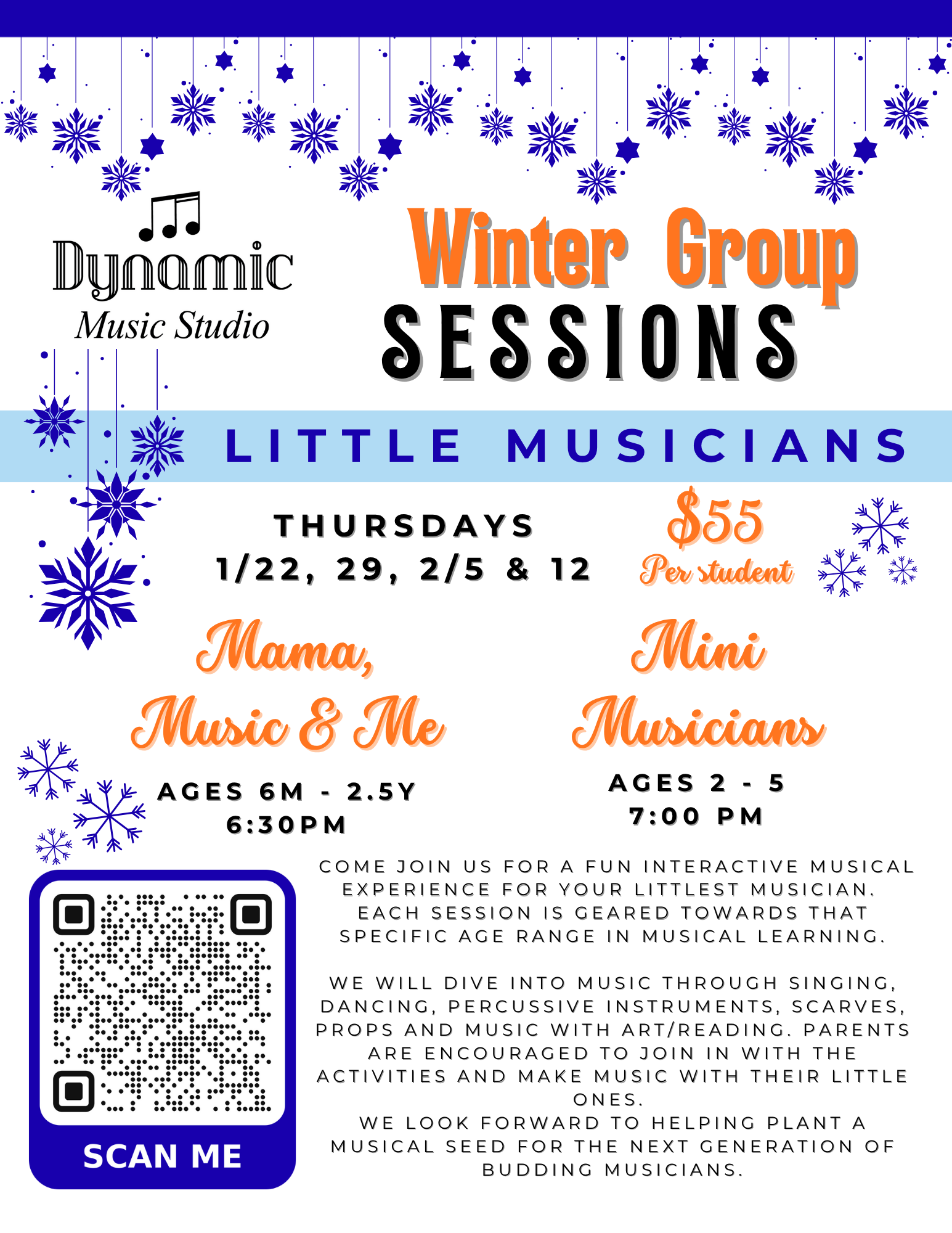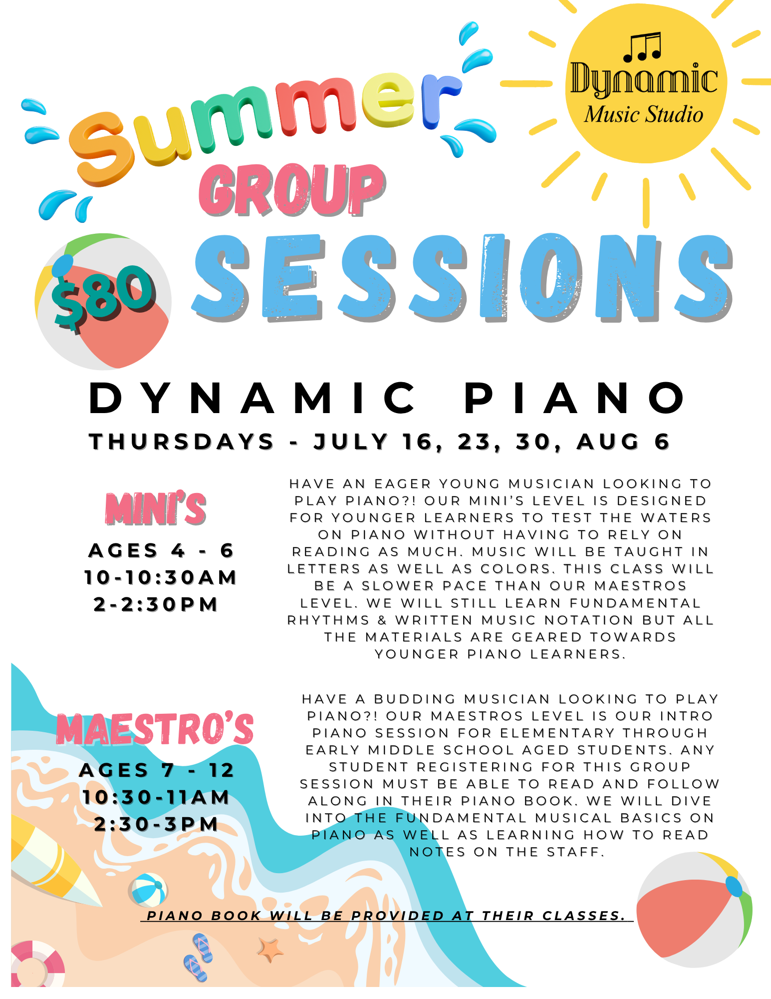 All of our seasonal Group Sessions are run through Monroeville Parks and Recreation, Murrysville Parks and Recreation & Dynamic Music Studio.