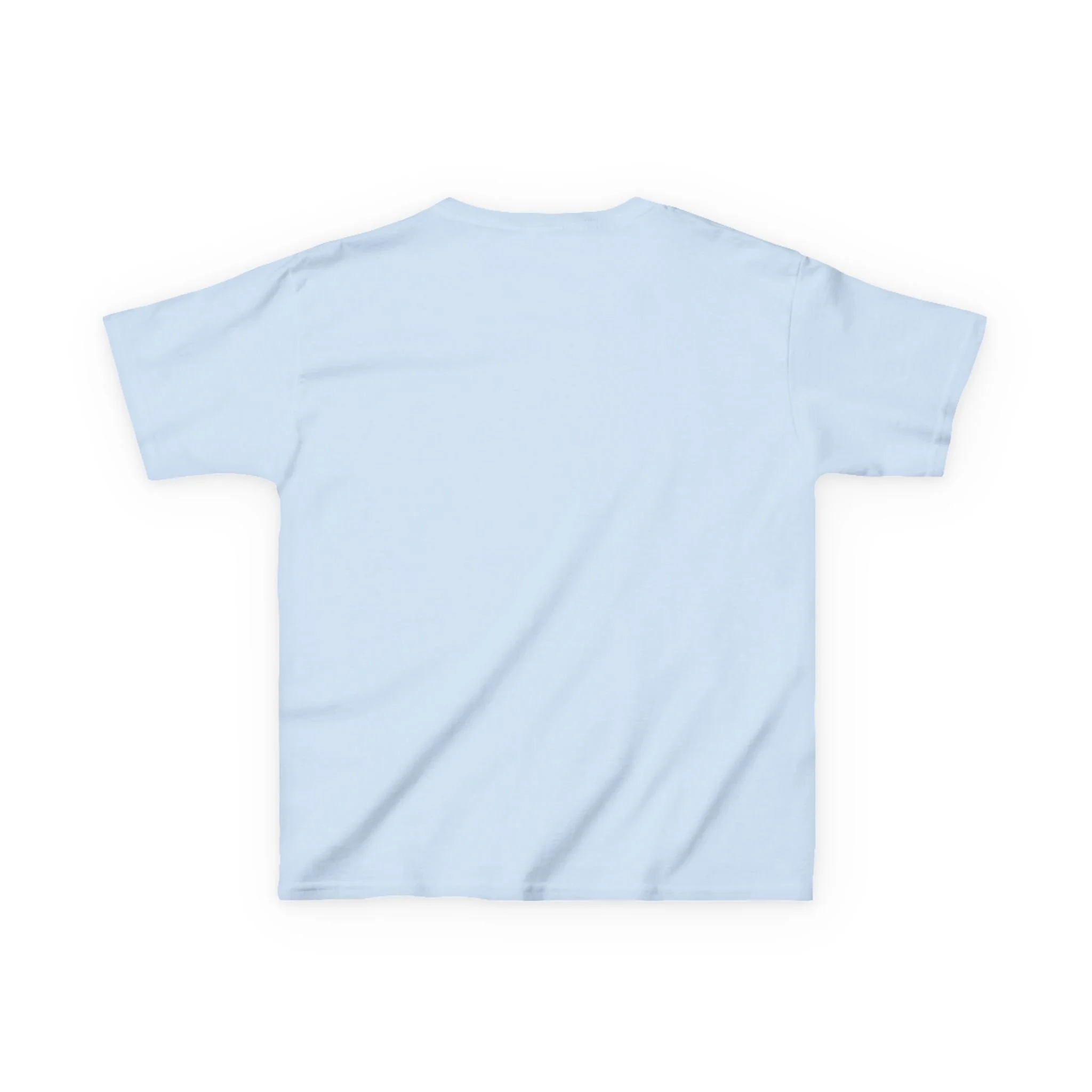 The kids heavy cotton tee is perfect for everyday use. The fabric is 100% cotton for solid colors. Polyester is included for heather-color variants. These fabrics are prime materials for printing. The shoulders have twill tape for improved durability. The collar is curl resistant due to ribbed knitting. There are no seams along the sides.