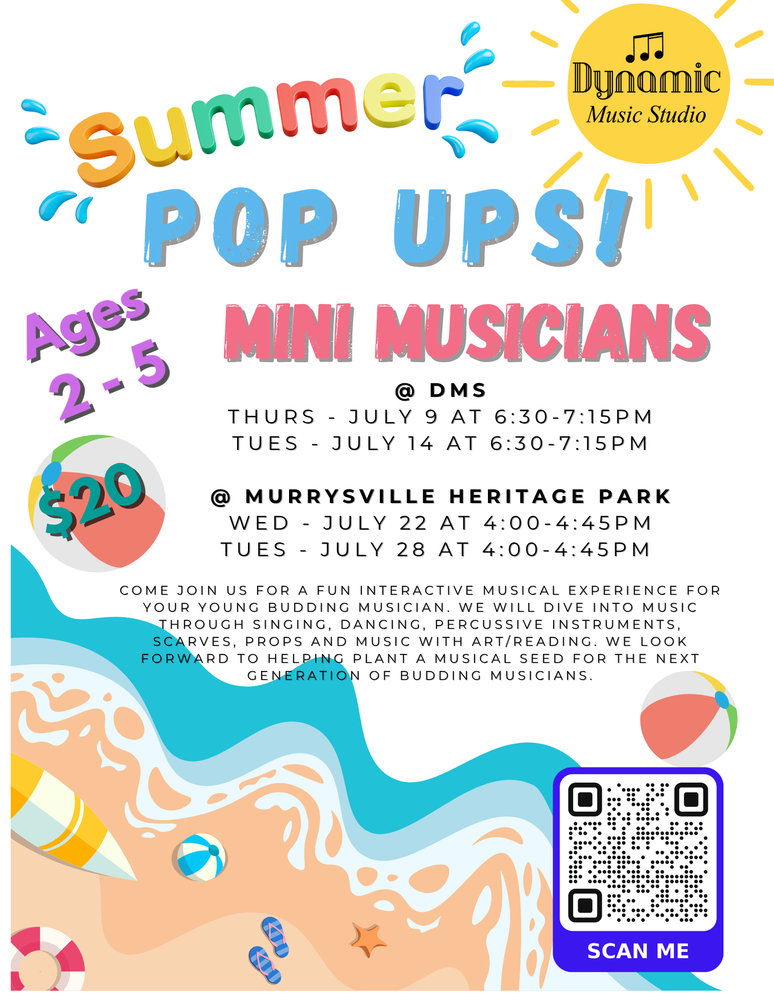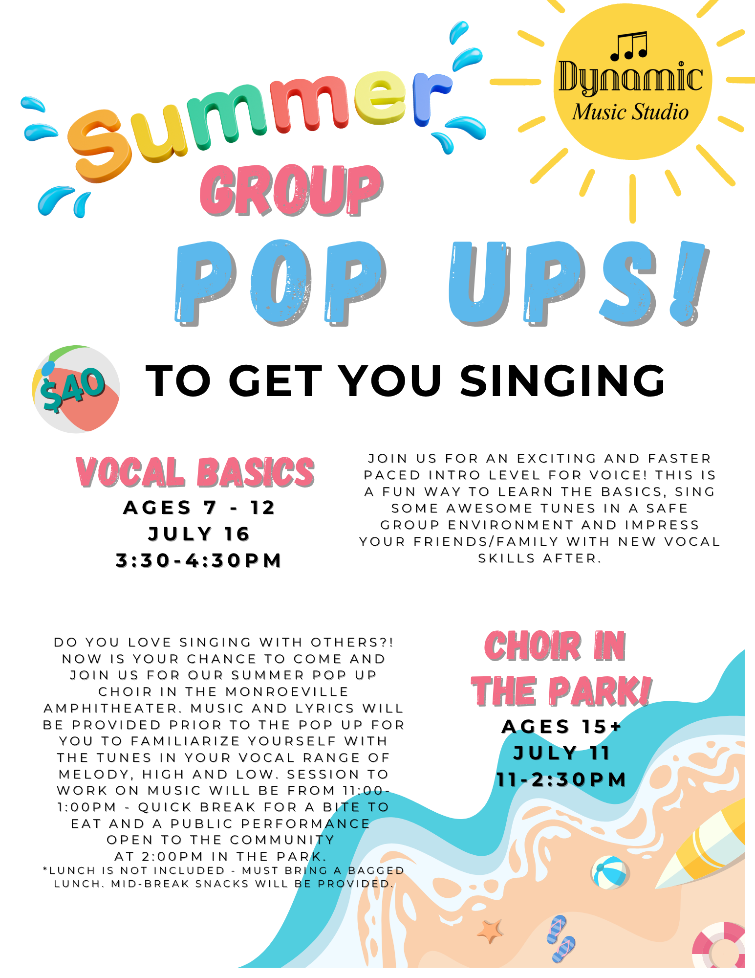 Summer Music Camps Sign up with Dynamic Music Studio Sign up with Monroeville Parks & Rec Sign up with Murrysville Parks & Rec